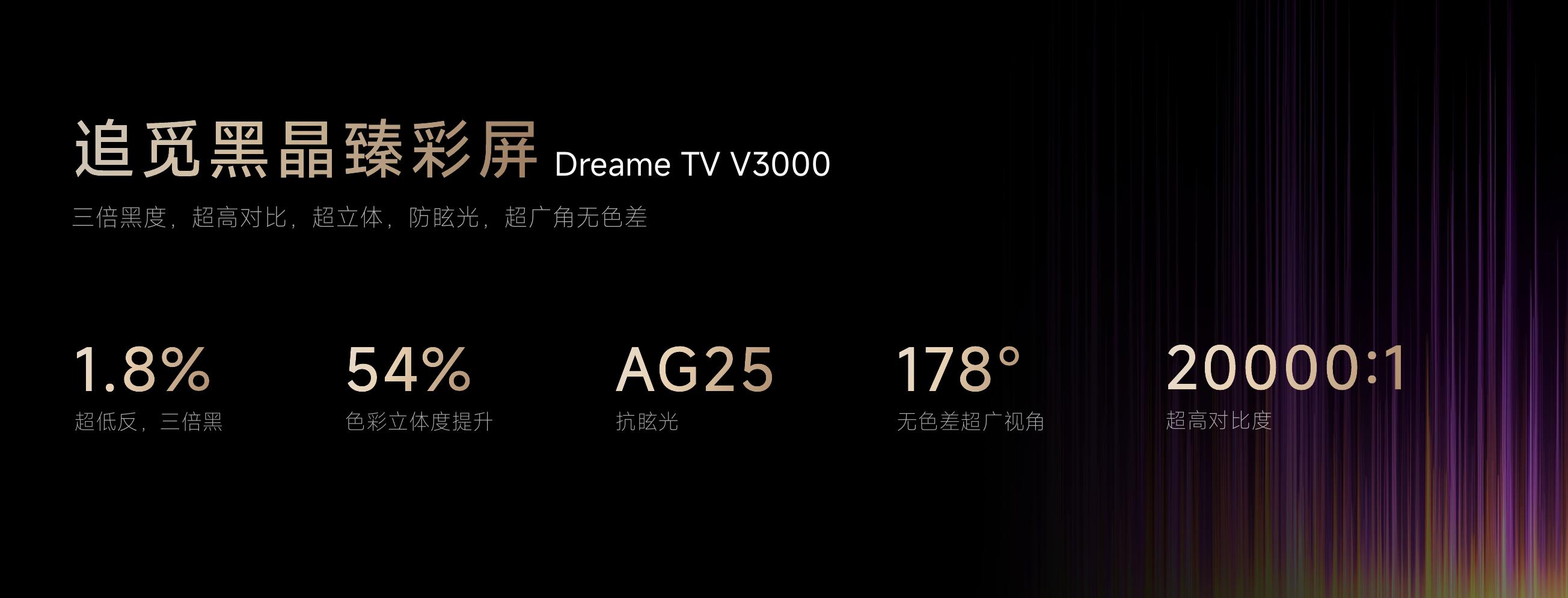 近期发布的追觅电视V3000系列,则在真正意义上实现了"178°可视角度",即使大角度侧着观看电视屏幕,色彩依旧逼真动人。为了实现这个目标,追觅工程师从底层搞透了液晶电视侧面观看偏色的原理,并且针对性的引入了偏振补偿层技术,从光量子层面彻底解决了这个问题。