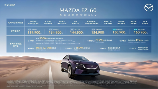 作为长安马自达首款全球战略级新能源SUV,EZ-60在造型设计、操控性能、智能座舱、主被动安全、匠心品质五大核心价值领域全面遵循全球标准,致力于为中国以及全球市场用户打造卓越的出行体验。长安马自达汽车销售分公司执行副总经理吴旭曦表示:“今天,长安马自达第二款新能源车型EZ-60正式上市;接下来,我们还将推出第三、第四款车型。这也让长安马自达成为国内第一家全面转型新能源的合资车企。不管在智舱、续航、空间、安全、操控、设计各方面,EZ-60都满足当前新能源用户的需求,很多配置还远超同级,EZ-60就是一款真正超越预期的新能源SUV。”