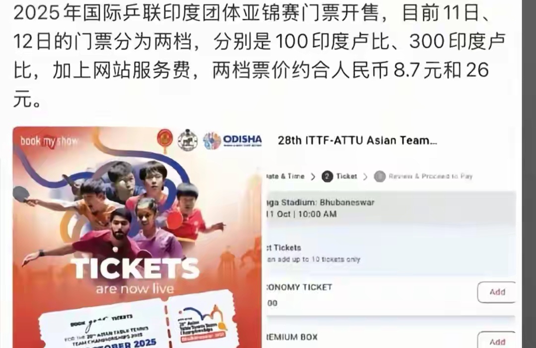 值得关注的是印度赛区的比赛环境。此前中国射击队在印度参赛时,队员出现呕吐腹泻等症状,李越宏更在抵达首日患上麦粒肿;2023年中国羽毛球队在印期间,多名队员因腹泻退赛,仅梁伟铿/王昶组合因自备食物得以完赛。这些经历引发球迷对国乒队员健康的担忧,尽管赛事门票价格亲民(含杂费仅8.7元与26元两档),但网友戏称这是“唯一买得起票却不敢亲临的赛场”。