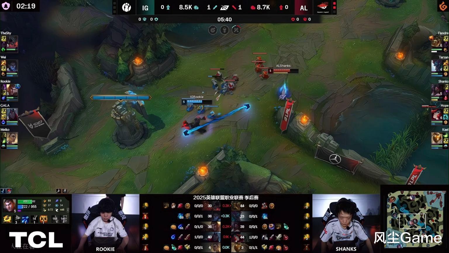 中路要是炸了,不仅资源拿不了,就连视野也会被压榨,打团就必定劣势,所以说到底,还是Rookie的问题最大,不过野核版本,不敢拿野核,也确实对BP造成了压力,自己不选的话,要么Ban、要么放,放给对手可能处理不了,Ban的话就多占一个位置,对手还是能拿到一个强势英雄。