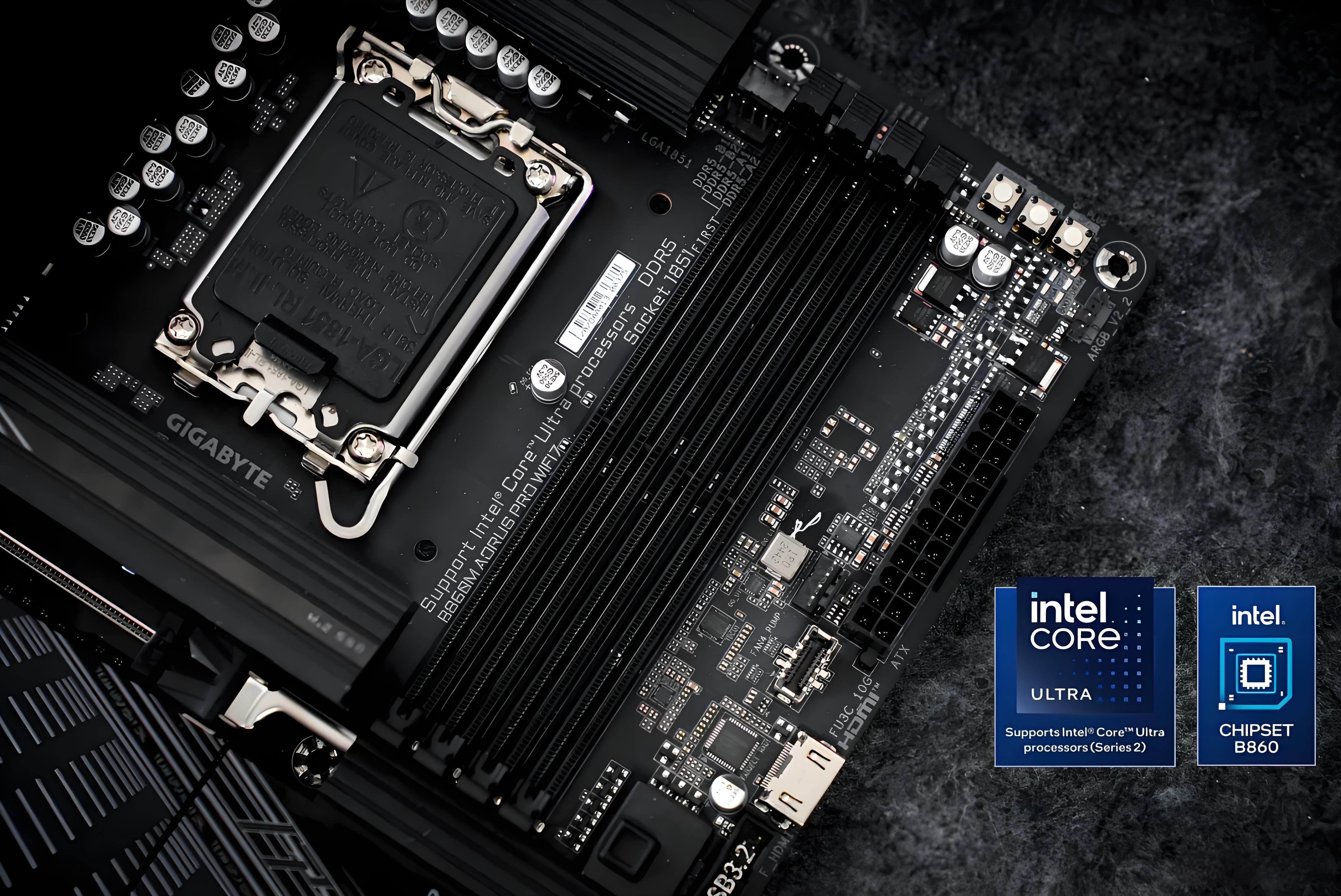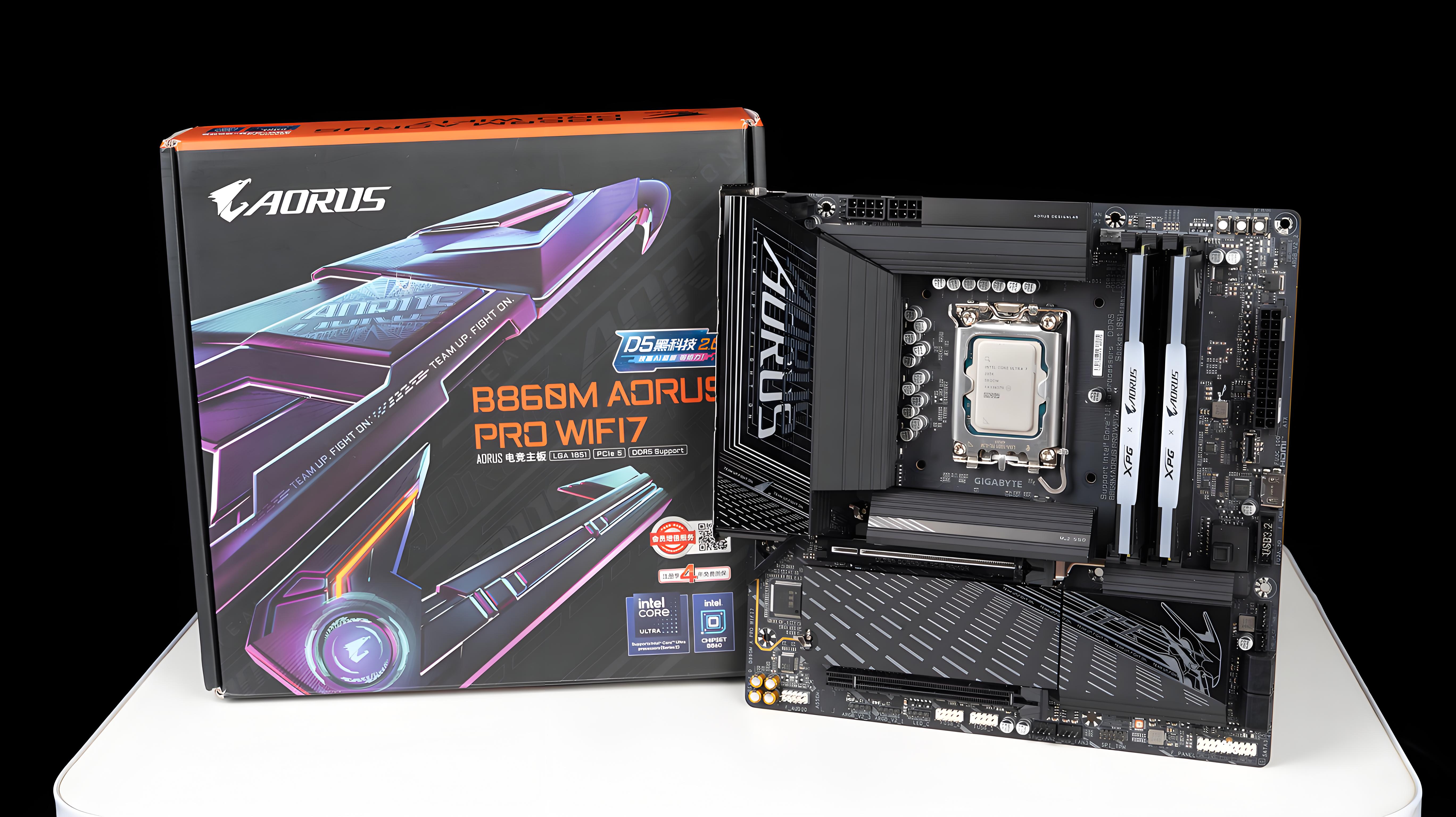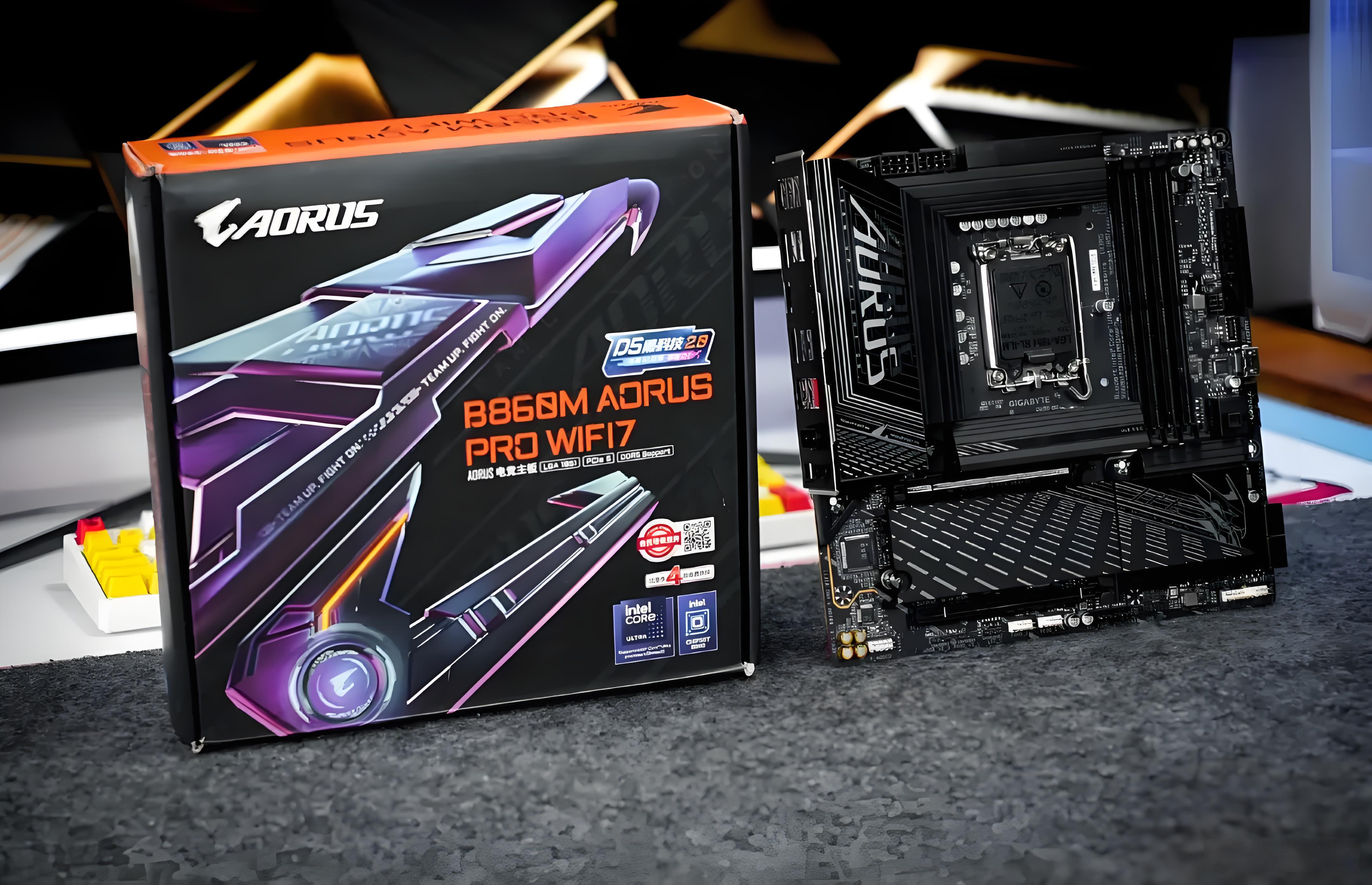 我选择的是定位于针对于极限电竞玩家的技嘉 B860M AORUS PRO WIFI7 电竞雕主板,采用M-ATX板型与8层PCB设计,适配Intel Core Ultra系列处理器的LGA 1851插槽,是兼顾性能与兼容性的中端优选。