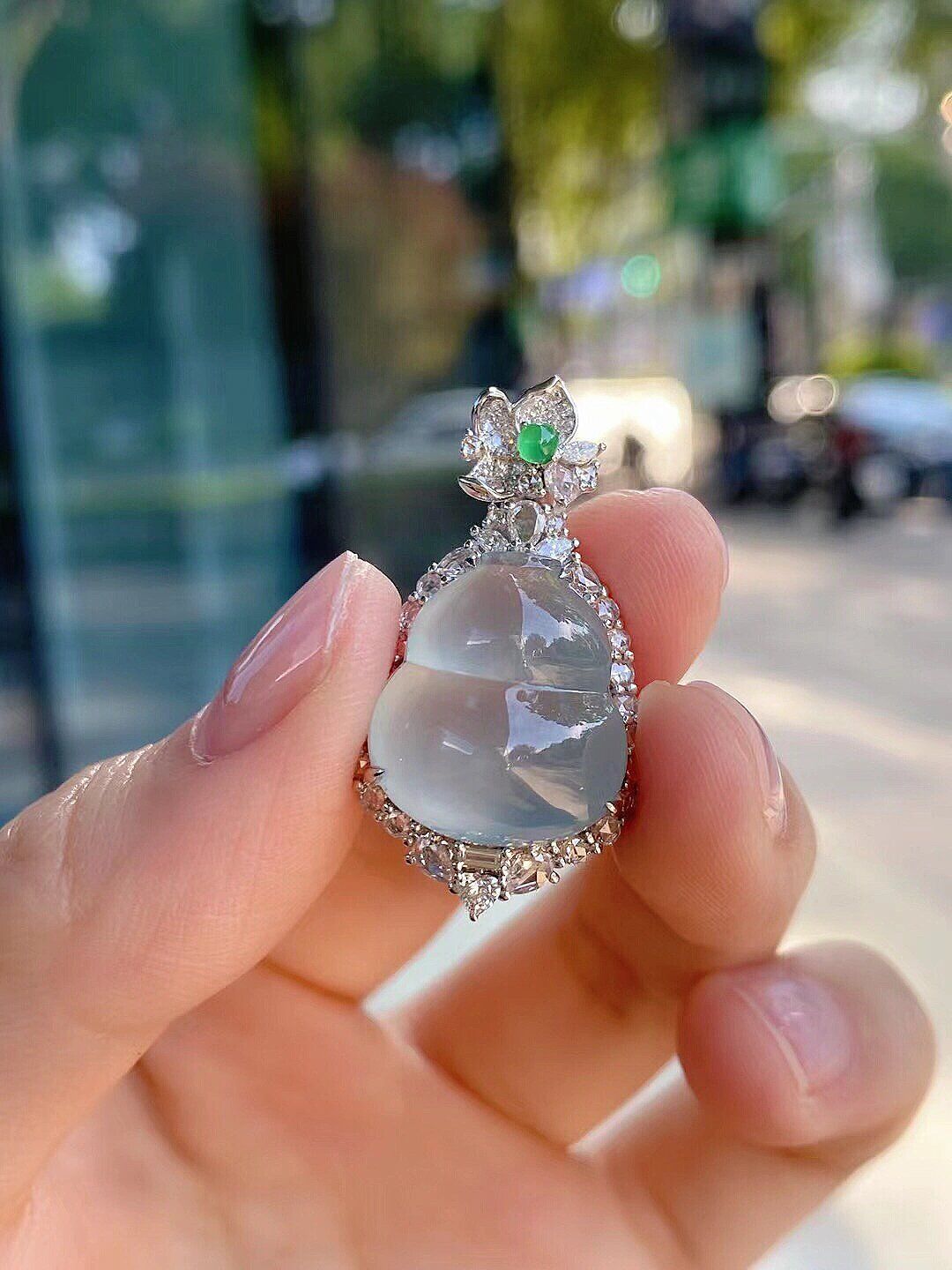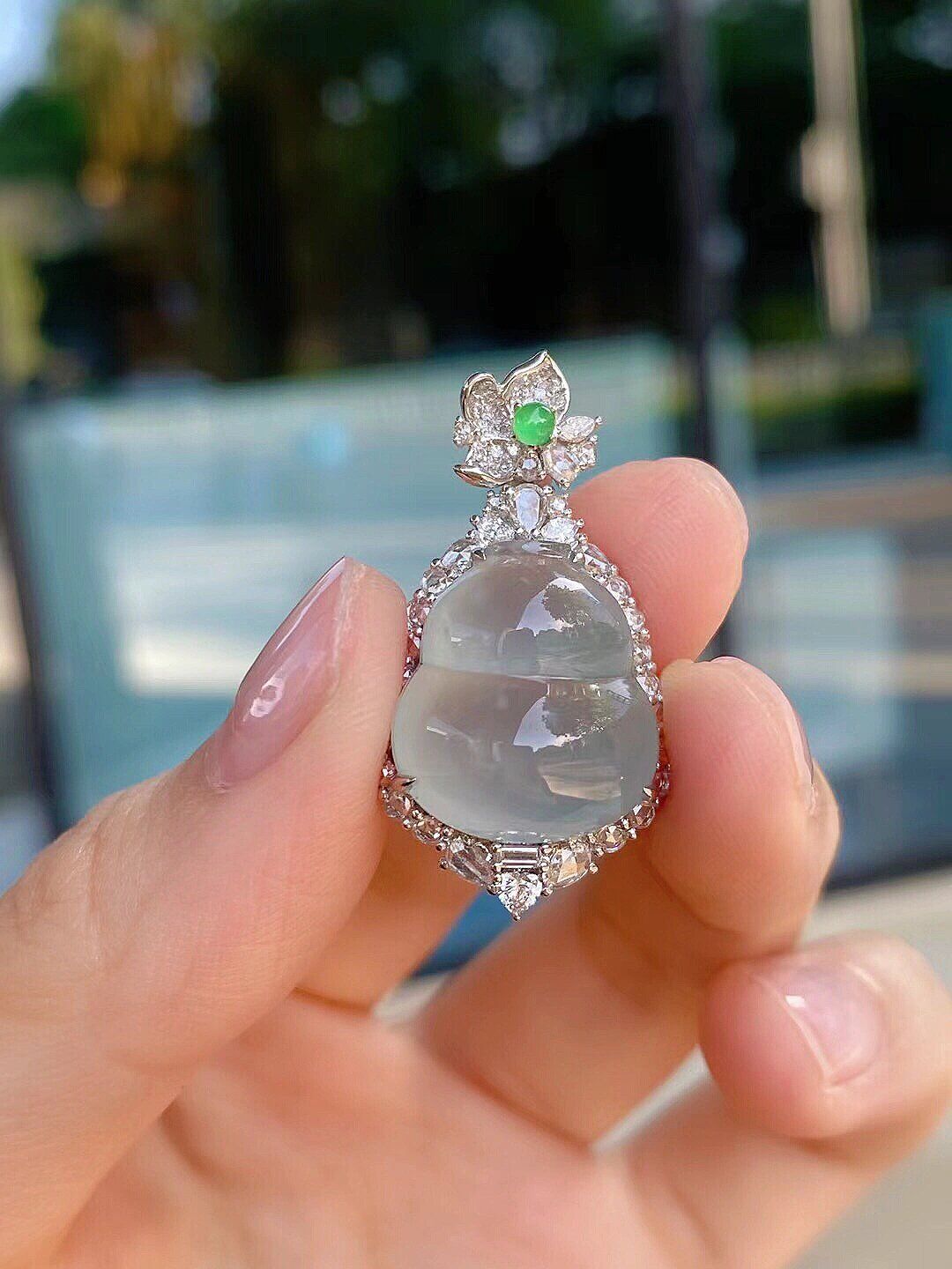 总体来说,这款冰雪葫芦吊坠不仅是一件高贵的翡翠艺术品,更是一个清新而又光彩夺目的佩戴选择,为你的装扮带来一份高雅和独特。