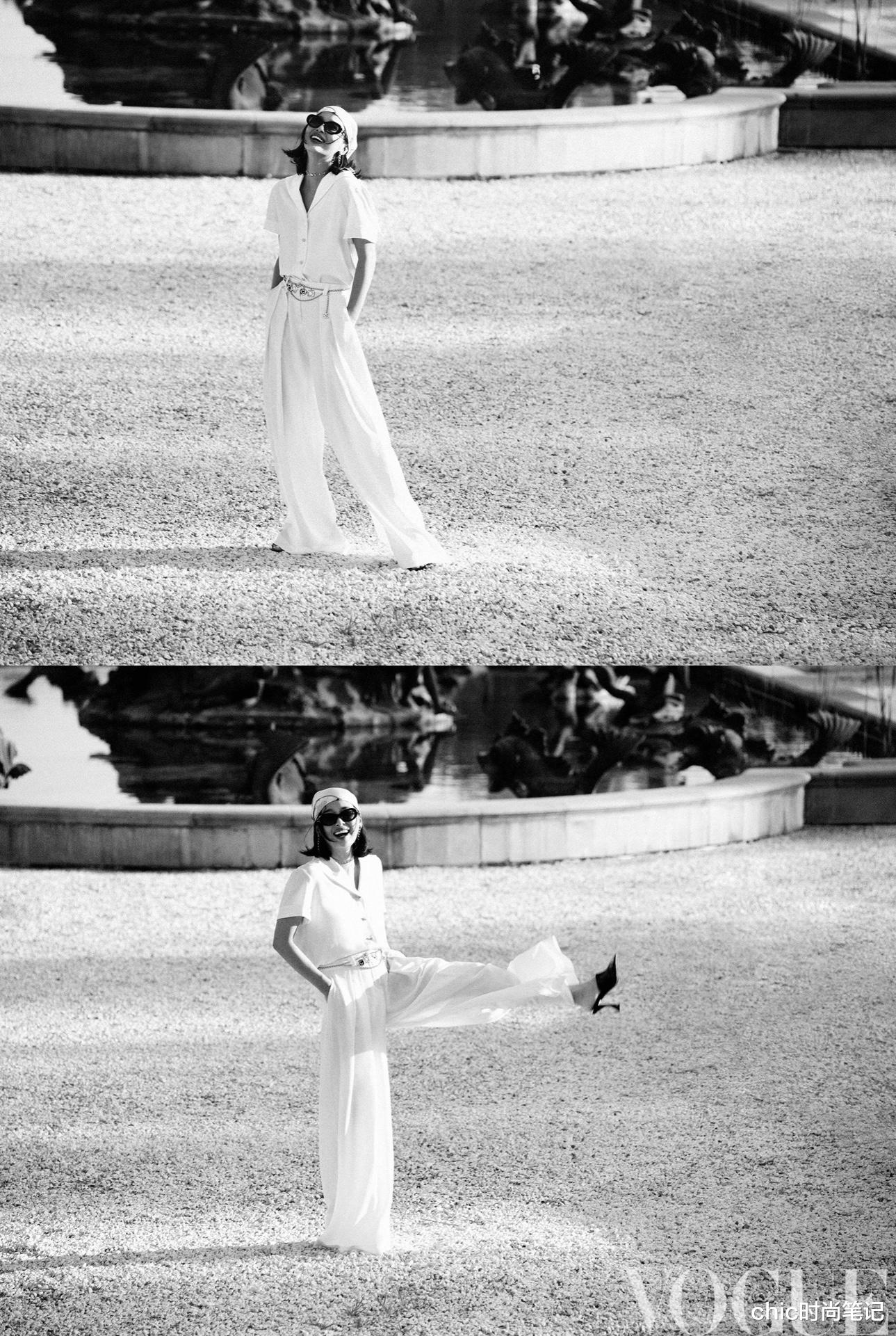 影后自带的松弛感,身穿白色CHANEL套装的辛芷蕾充满了随性、自由的气息,头巾和项链是点睛之笔,搭配黑色猫跟鞋,优雅女神具象化了。