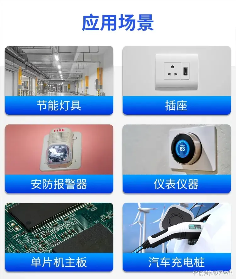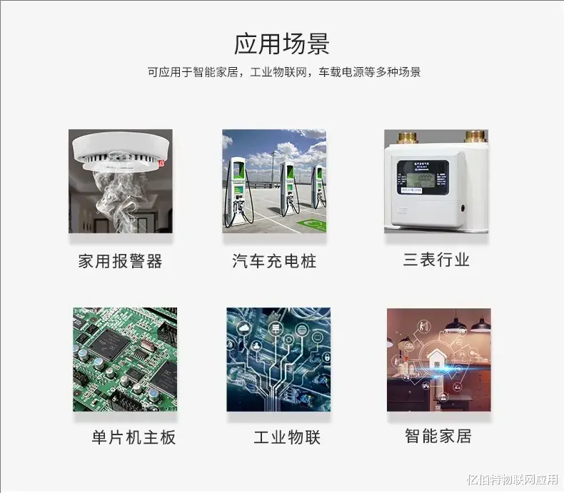 适用于汽车充电桩、安防报警器、智能家居、工业仪表等。