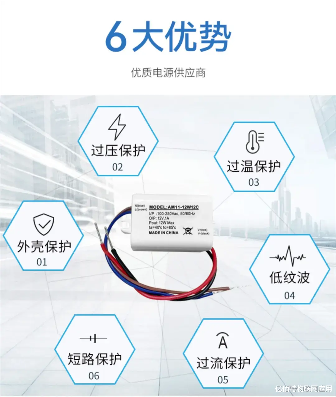 内置过压、过流、短路、过温保护,故障消除后自动恢复。