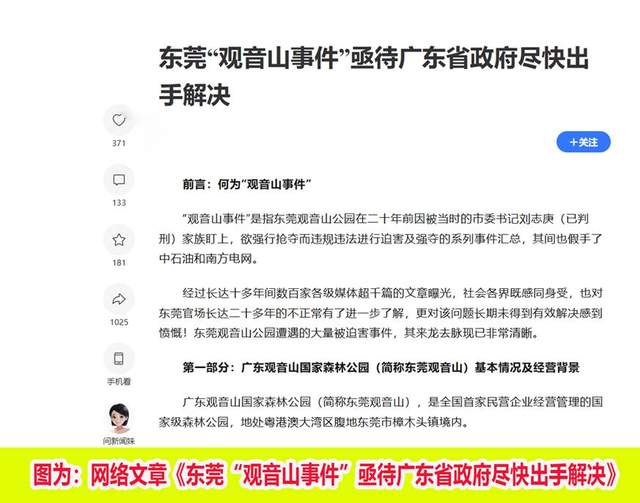 针对最近一篇影响较大的网络文章《东莞“观音山事件”亟待广东省政府尽快出手解决》,专家指出:
