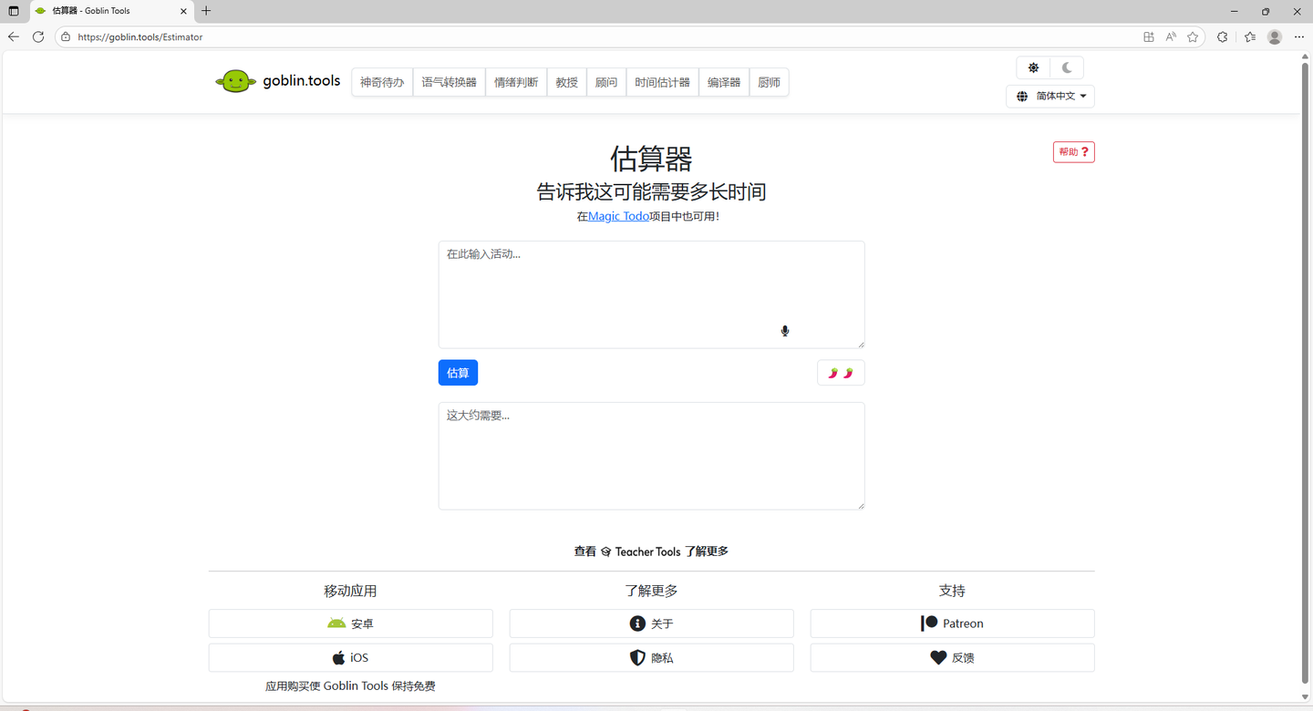 网站地址: https://goblin.tools/Estimator