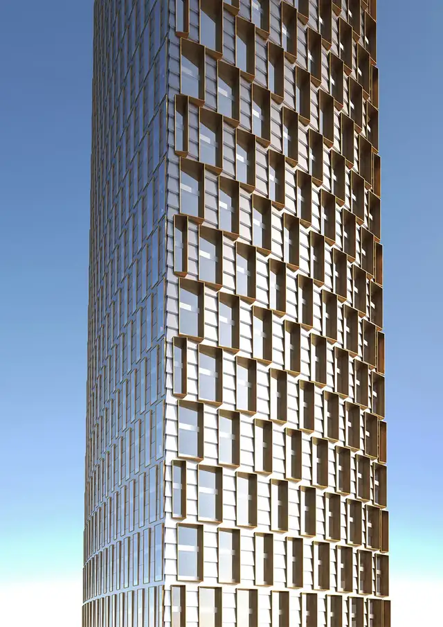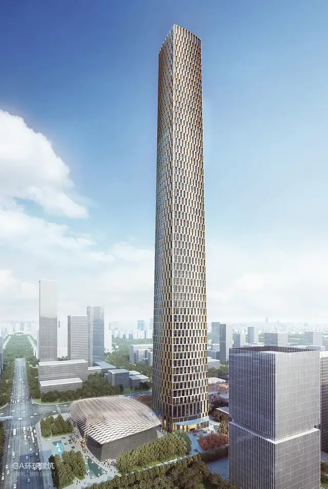 塔楼共101层,下部75层用于办公,上部为酒店。整体造型微微收分,结合电梯核心筒的合理布局,使每层空间都得到高效利用。