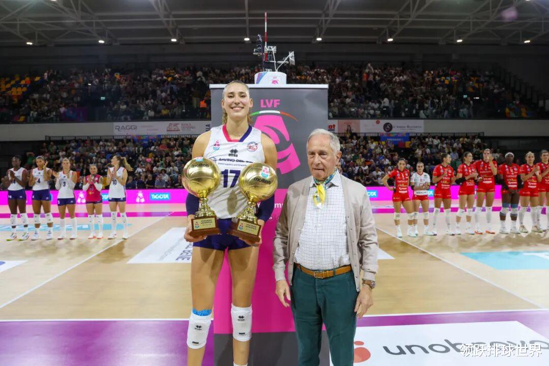 个人数据方面,本场比赛中,意大利国家队接应叶卡捷琳娜·安特罗波娃火力全开,独得22分(35扣18中2拦2发),荣膺全场MVP,值得一提的是,她在赛前还被官方表彰为上赛季总得分王与发球得分王,而今晚的表现也配得上这份荣耀。