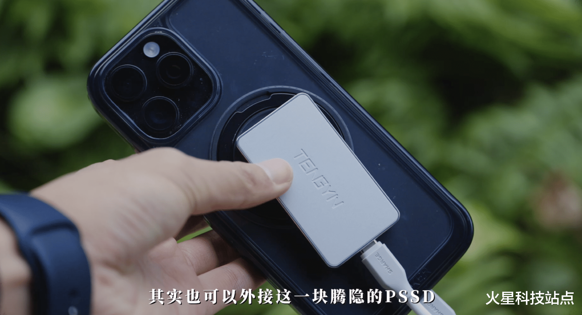 然后我还会准备买一台和我的白色iPhone17Pro Max风格匹配的外置硬盘,这几天我在网上翻看了很多型号以及UP主评测,我个人觉得,腾隐的这个星光银配色的移动固态硬盘和手机是最为搭配的。