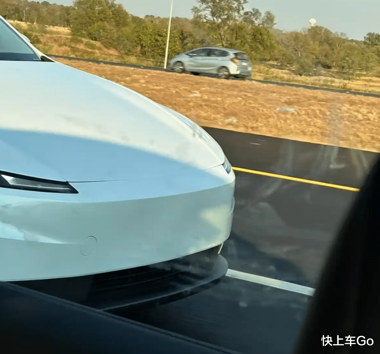 从外观来看,廉价版Model Y没有沿用现款的贯穿式前灯设计,也未保留分体式大灯造型,而是用上了更简化的长条形灯组布局,毕竟省成本嘛,能理解,前包围区域的贯通式通风口设计得以保留。