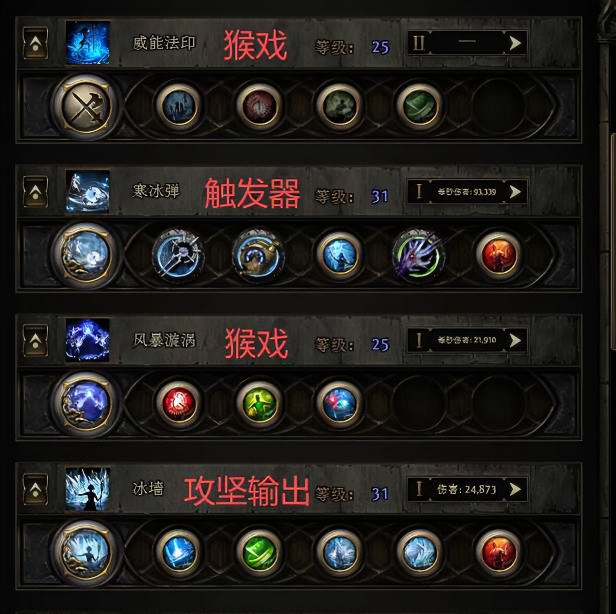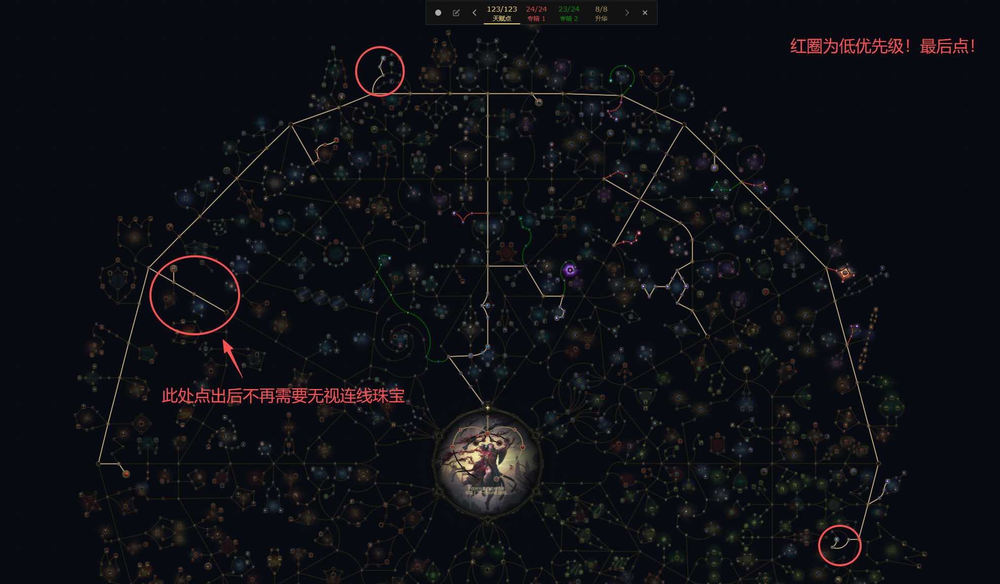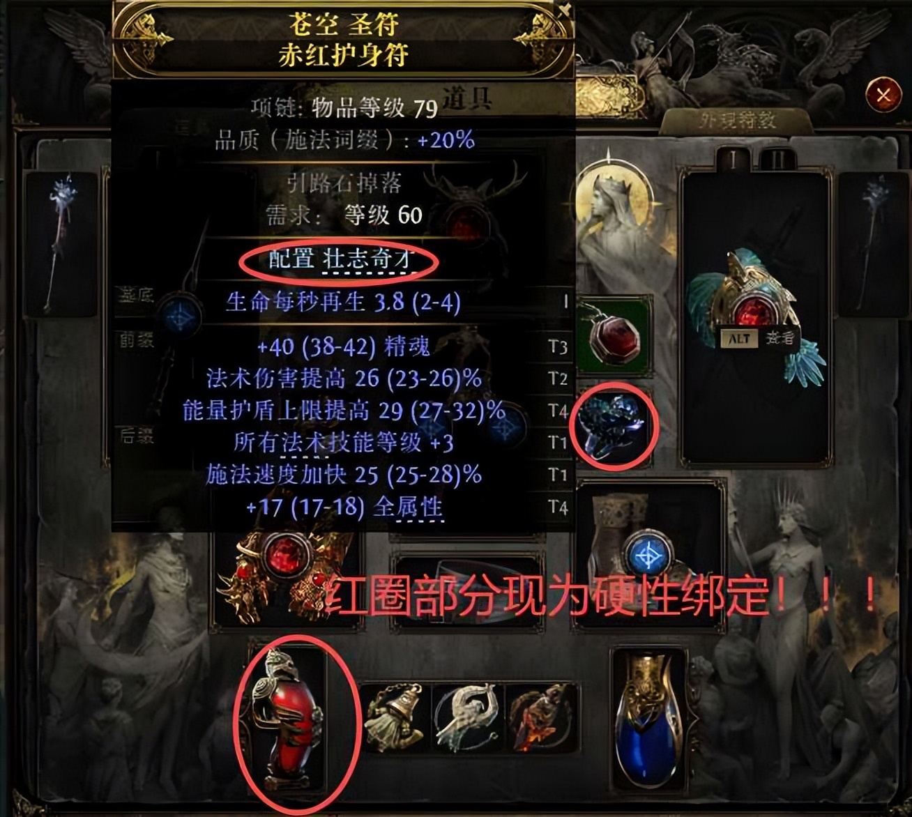 新的绑定涂油联动天赋盘的赤红仪式达到暴击概率增加施法速度以及生命再生。战士之血(血瓶)来弥补涂油不能再涂极速代谢。灾变种子(戒指)来弥补天赋盘变动所损失的暴击几率以及暴击伤害。经过上述变动后我们发现我们不仅解决了一个问题,还又多获得了3个珠宝槽位,这意味着我们又可以获得更多的暴击几率、暴击伤害、击杀回血%、inc伤等属性。甚至因为全局技能消耗变成消耗生命,我们还能玩花活了!!!