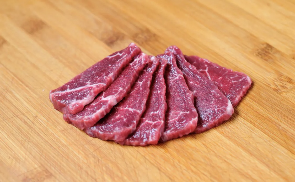 顶着牛肉纹路切柳,切好后清水漂下血水