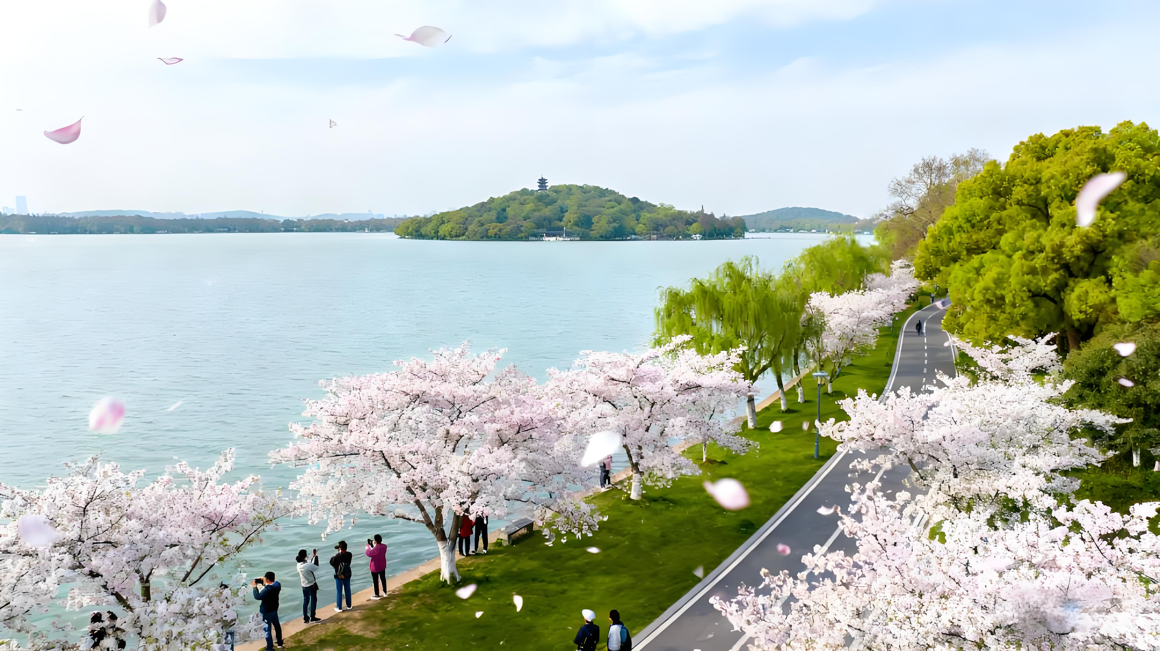 春天最不能错过的就是磨山樱花园,足足 520 亩大的园区里,上万棵樱花树接力开花。关山樱颜色特别鲜艳,云南早樱又显得很清新,两个搭配在一起特别好看。这里还和日本弘前、美国华盛顿的樱花园,一起被称为世界三大赏樱胜地。你可以坐东湖游船从水上看樱花,粉白色的花瓣飘在水面上;也可以登上楚天台从高处往下看,大片的樱花和湖水连在一起超壮观。要是赶上樱花季武汉马拉松开跑,还能看到大家在花海中奔跑的热闹场面。