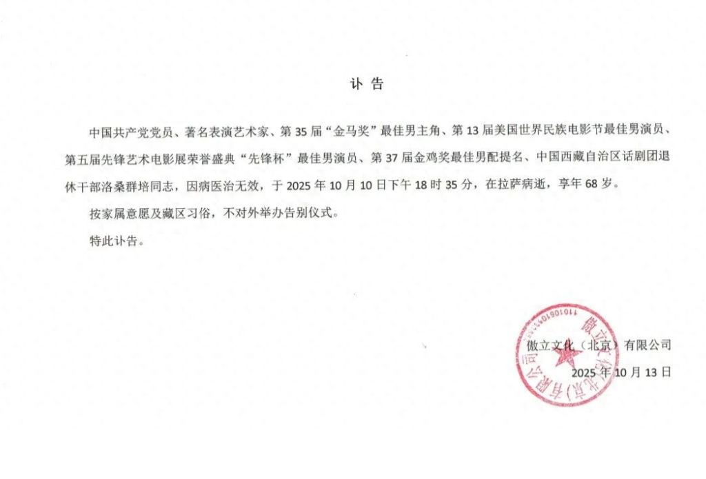 1977年,洛桑群培进入上海戏剧学院学习,并参演了《文成公主》、《拉萨往事》、《门巴将军》、《茶颂》、《贡嘎日噢》等多部影视作品。