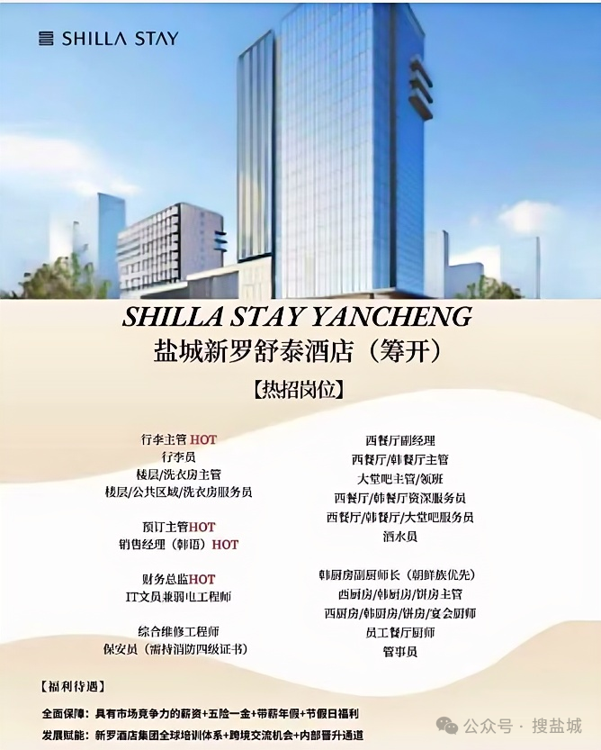 2025年,盐城经济技术开发区迎来高光时刻——备受瞩目的韩国三星集团旗下顶级酒店品牌新罗舒泰酒店正式进入筹开招聘阶段,预计将于年内盛大开业。这一总投资达4.5亿元的重点项目,坐落于嫩江路北侧、东环路西侧,总建筑面积约27000㎡,规划为地下一层、地上十八层的现代化高端酒店综合体,标志着盐城高端服务业与国际接轨迈出关键一步。
