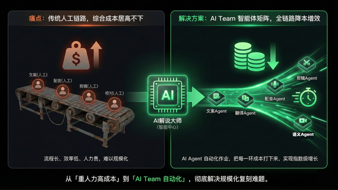 👉 累: 文案想改一个字?对不起,音频得重新生成,剪辑轨道得重新对齐,字幕得重新压制,牵一发而动全身,心态直接崩了。
