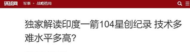 环球网:独家解读印度一箭104星创纪录 技术多难水平多高?