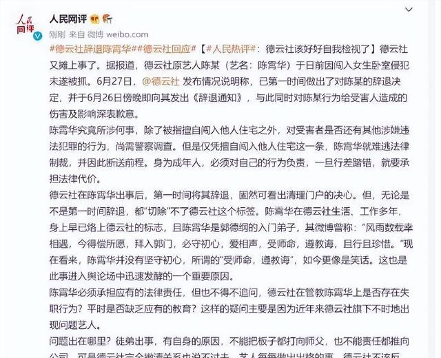 2022年深夜,陈霄华未着寸缕擅自闯入女子住宅并意图qin犯被警方拘留。