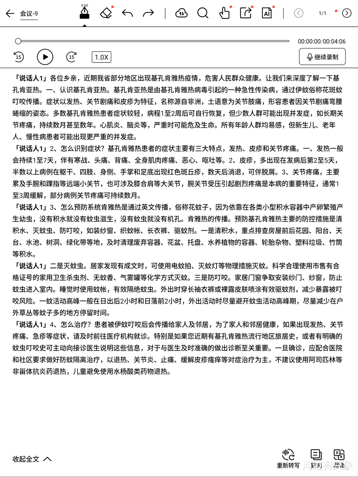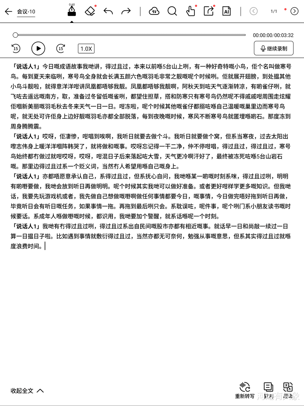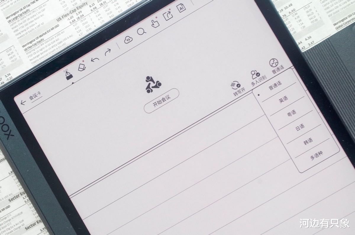 接下来要说的就是今年文石的新升级功能,会议录音转写文字功能,支持普通话,英语,粤语,日语,韩语和上面的语言混合识别,而且支持多人识别。