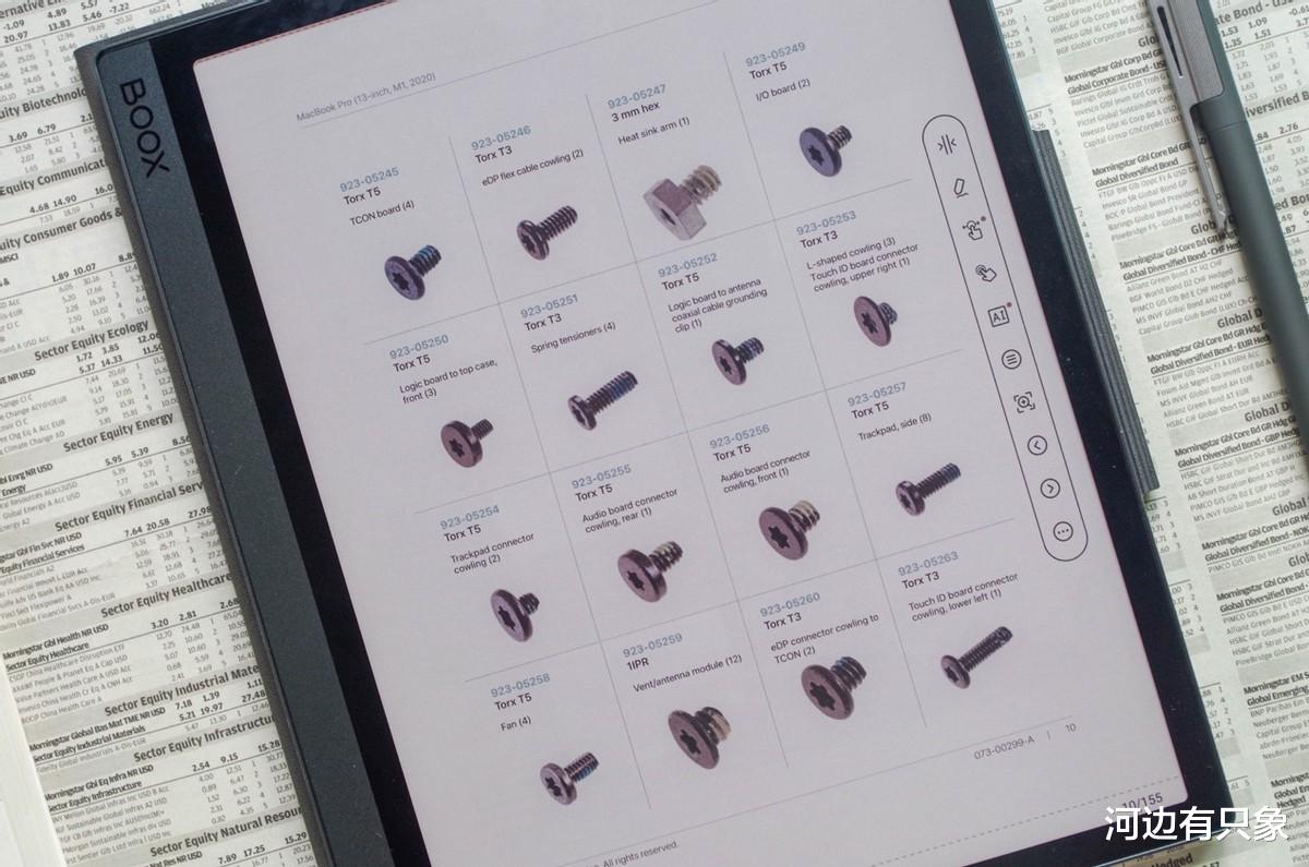 首先就是墨水屏的节能,有时候我们不需要频繁去翻页——比如维修手册,我们需要的是长时间对照,墨水屏的特性就是它不刷新的时候不耗电,我们不用焦虑续航的问题。