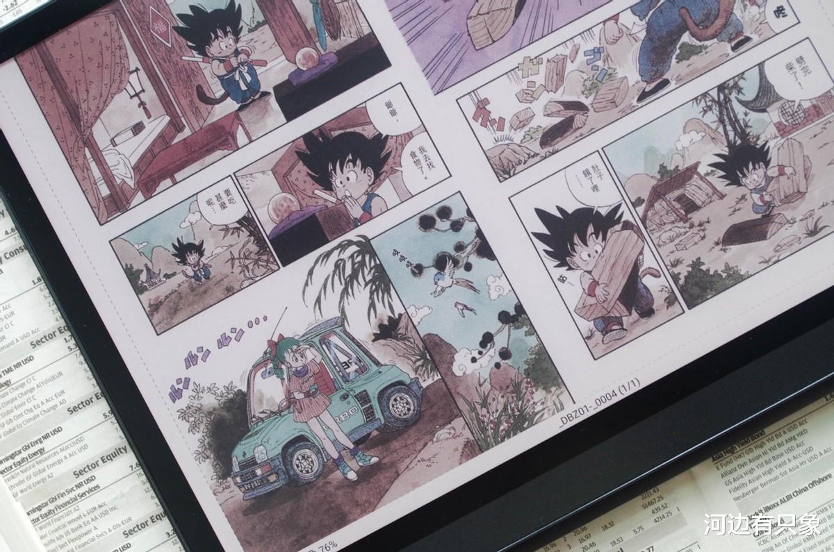 对于漫画爱好者来说,有了彩墨屏就等于多了一份额外的乐趣。从上面这张《龙珠》的节选可以看到彩墨有些颜色的表现还是非常棒的,布玛蓝绿色的头发,蒂芙尼蓝的车还原得很到位。
