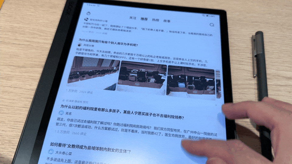 同样丝滑的还有就是刷知乎这张瀑布流的APP,甚至不会觉得自己是在使用一个墨水屏。