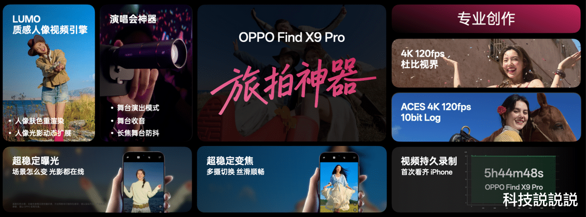 OPPO Find X9 系列以颠覆性升级,重塑安卓视频体验新标杆。通过 LUMO 智慧视频系统,基于 OPPO 超级影像专用调度器等核心技术优化,全面优化曝光、变焦与长时间拍摄的稳定性,带来超稳定且省电的流畅视频拍摄体验。Find X9 系列视频拍摄功能还重点优化了变焦体验,变焦操作零时延反馈,且更符合人眼习惯,镜头切换时也能无缝传递参数,实现超广角到长焦的丝滑过渡。