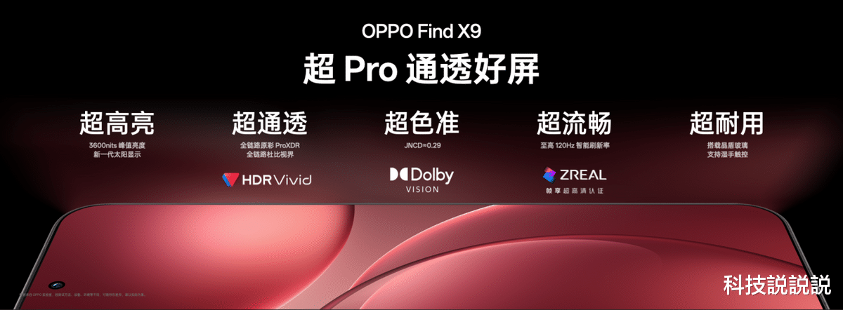 暗光也护眼,全天都通透。OPPO Find X9 的这块护眼好屏的显示素质同样出色:3600nit 超高亮度配合太阳显示技术,确保画面清晰可见;全链路原彩 ProXDR 和杜比视界,带来鲜活生动的色彩表现;120Hz 高刷并覆盖晶盾玻璃,同时支持湿手触控,兼顾流畅触感与耐用性。OPPO Find X9系列的 1nit 明眸护眼屏,以顶级显示素质、满级护眼表现,斩获包括首个莱茵护眼金标在内的 8 大权威认证。