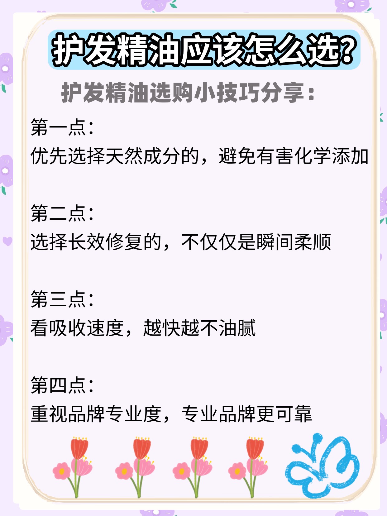 好多人纠结护发精油有必要买贵的吗?还有干枯毛躁发质该怎么选才管用?其实价格真不是关键!平价款里也有不少能打的,核心看成分和质地,含荷荷巴油、角鲨烷这些天然油脂的,滋润度足够,还不会黏腻。干枯毛躁发质用的时候,洗完头吹到半干,取 2-3 泵精油搓热,从发中到发尾均匀涂抹,尤其发梢多涂一点,能快速抚平毛躁,让头发顺溜不少。别盲目追 “修复第一名” 的噱头,适合自己发质、用着舒服的才划算。下面是我总结的护发精油选购注意事项,干货满满,可以先赞收藏!