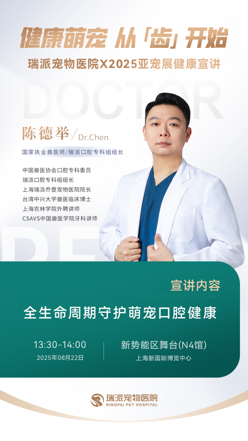 瑞派特邀兽医专家坐镇亚宠展,带来两场高含金量的主题讲座,为宠主赋能科学养宠智慧。