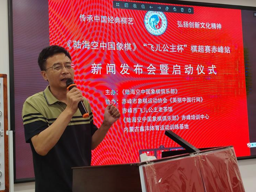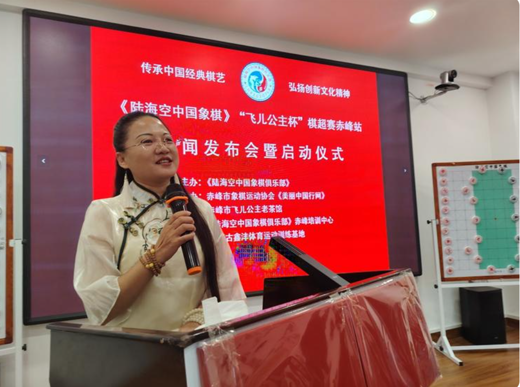 (内蒙古赤峰讯 李云飞 金伟 李凰英 莫丽坤 采编 封君/文 李凰英/图)金秋九月,清风送爽,丹桂飘香满红山。9月13日,一场汇聚传统智慧与创新活力的文化体育盛会——《陆海空中国象棋》“飞儿公主杯”棋超赛赤峰站新闻发布会暨启动仪式,在充满古韵茶香的赤峰市飞儿公主老茶馆四楼会议室隆重举行。来自棋类运动领域的专家学者、各界领导嘉宾、资深棋友、媒体记者,以及怀揣棋艺梦想的小棋手与家长们欢聚一堂,共同见证这项创新棋艺项目在赤峰落地启航,开启传统棋文化与现代文旅体育融合发展的全新篇章。