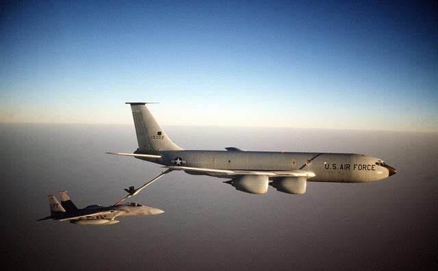 美国空军动用战略核轰进行跨洋转场或者威慑巡航的时候,也会有空中加油机的伴随,根据烽火线掌握的信息显示,如果美国空军有出动2架B-1B或者B-52H战略核轰,就会有2架空中加油机伴随,或者在相关的空域等待,从而为战略核轰提供空中加油服务。KC-46A是美国空军用来替代KC-10C的型号,目前美国空军已经大批装备KC-46A空中加油机,为此已经退役KC-10C系列,不过同时保留了大量的KC-135R空中加油机。