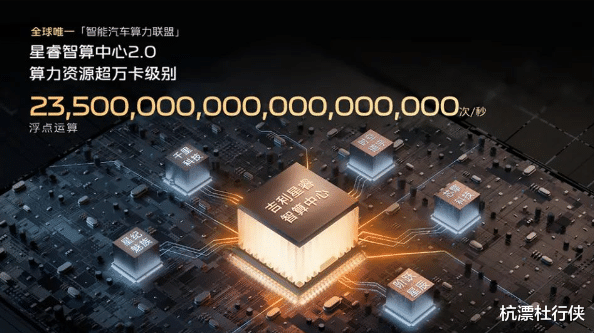 (二)强大算力支撑强大的算力是智驾系统的核心驱动力,就如同人类的大脑,算力越强,智驾系统处理数据和做出决策的速度就越快、越精准。星睿智算中心 2.0 便是 “千里浩瀚” 智驾系统的强大 “大脑”,它由吉利联合多家科技伙伴共同打造,汇聚了各方的智慧与力量,其算力资源达到了万卡级别,综合算力高达 23.5EFLOPS ,一举登顶中国车企算力榜首。这一强大的算力,让智驾系统在面对复杂路况和海量驾驶数据时,能够迅速做出反应,轻松应对各种挑战。