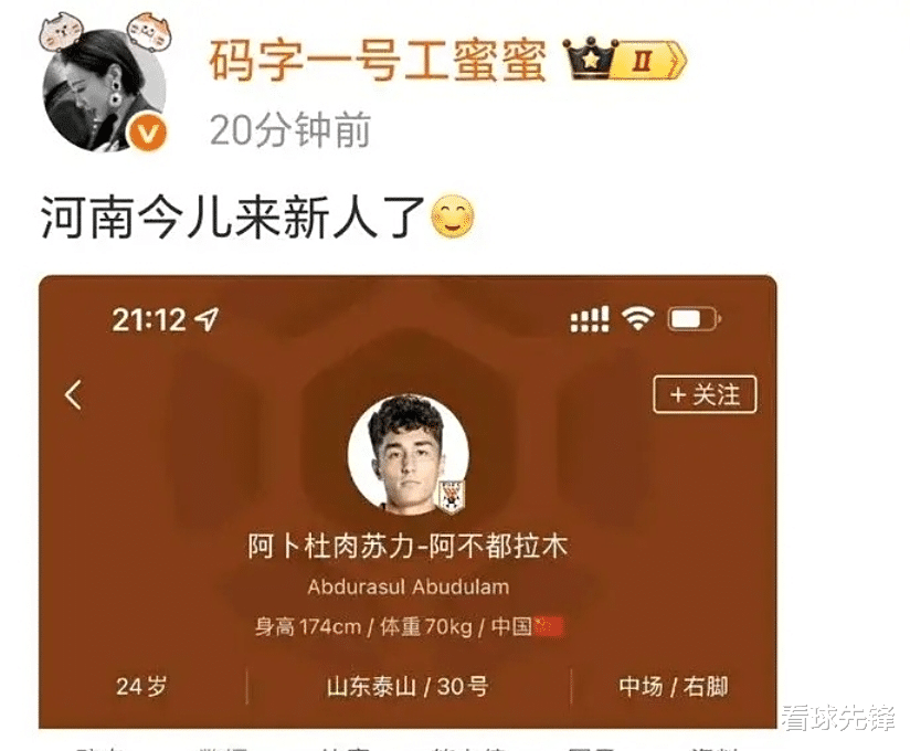 对于肉苏力的租借,足球记者记者鲁蜜发文“河南今儿来新人”给予确认,从德转查询,鲁能足校小将阿卜杜-肉苏力和山东泰山队还有一年半的合同,加上球员成长空间本次人员流动形式为租借!