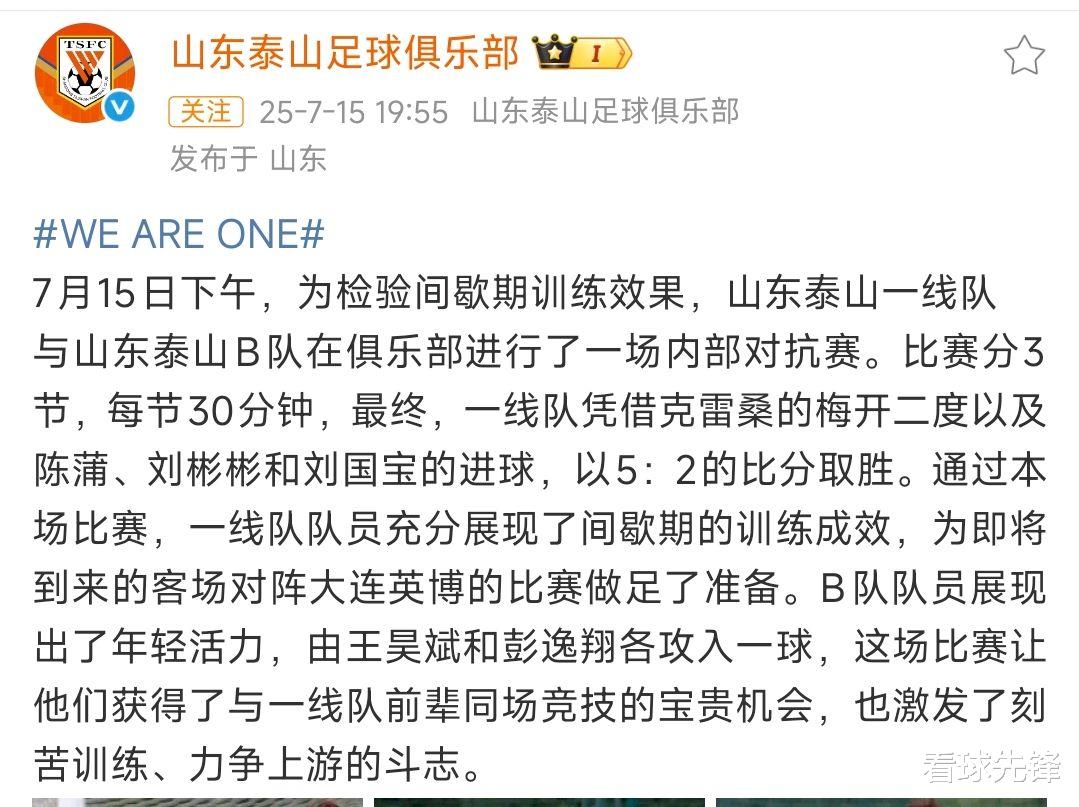 从韩鹏上任开始,山东泰山迎来众多变化,尤其重启“小黑衣”被点名表扬!除了训练方式变化,韩鹏指导在平衡成绩和比赛机会后,为促进年轻人成长已同意刘国宝租借加盟长春亚泰、阿卜杜-肉苏力租借河南建业队;从南通支云回归的卢永涛将再度外租!