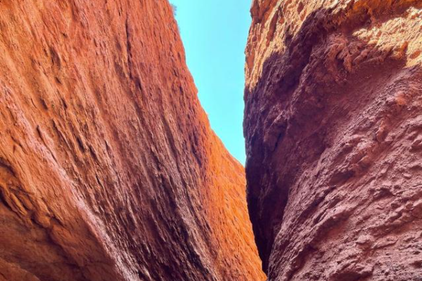 天山大峡谷是中国最美丽的红色大峡谷,坐落在库车县北部六十四公里的地方,坐落在天山南麓。在维吾尔语中,也把天山大裂谷称为“克孜利亚”,指的是一片赤红的峭壁。天山大裂谷具有丹霞与雅丹两大景观,是国内少有的干地风景名胜区。那些棕红色的山峦,不知经历了多少岁月的风吹雨打,被山洪冲刷,沉寂中蕴藏着庞大的能量。可以这么说,这是上天对新疆的馈赠。