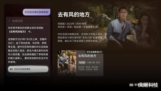 其中,最令人惊艳的莫过于AI搜片功能。当面临“想看一部电影但死活想不起名字”的窘境时,现在只需对小艺说出模糊的剧情、角色特征或者经典台词,就能快速定位相关剧集。比如问小艺“刘华强说这瓜保熟吗是哪个电视剧?”小艺秒定位《征服》。此外,百科问答能随时解答用户的各种疑问,AIGC功能的写诗、出数学题等,让电视不止是娱乐工具,更是孩子的良师益友和每位家庭成员的好帮手。