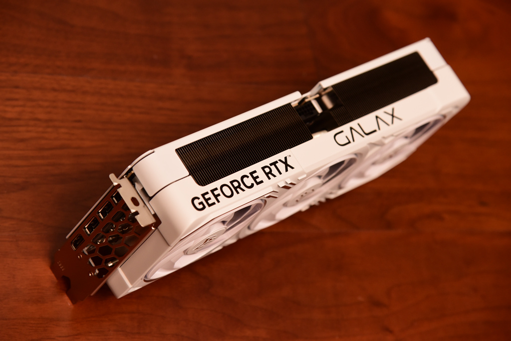 显卡的背板末端采用了镂空式设计,可以通过热管将GPU核心的热量带走,及时散出。