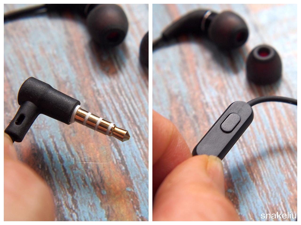这款耳机的3.5mm版本是自带麦克风和按键设计,所以3.5mm接口分割了四段触点。而高灵敏度麦克风收音效果还是不错,可以轻松实现通话无惧复杂室外环境。耳机的接口也做了L型设计和镀铜处理,长时间听音乐不会出现接触不良,或者是折断线材的情况。