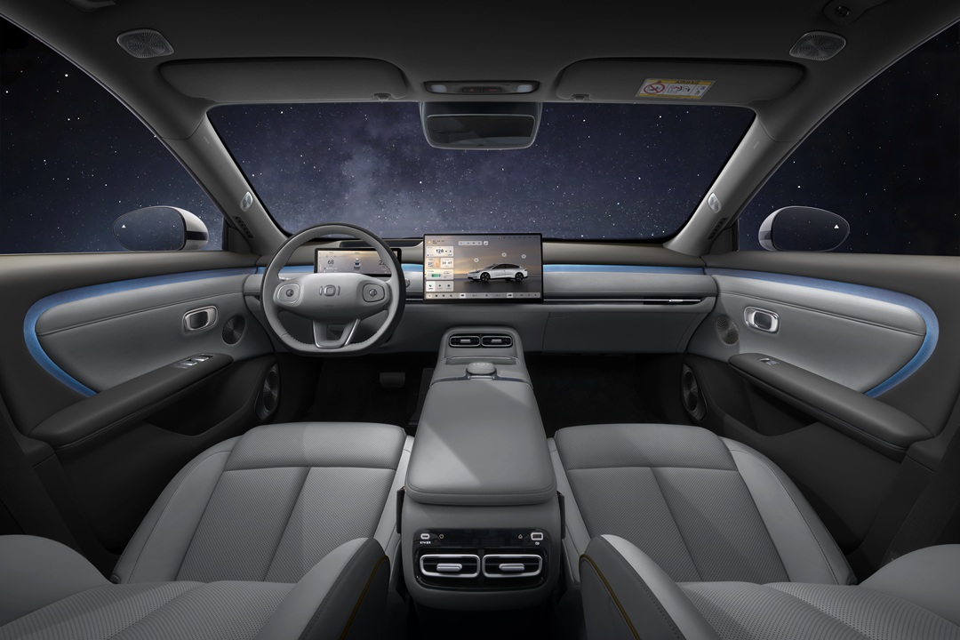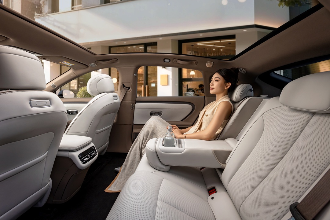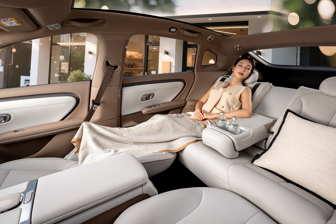 乘坐舒适性方面,长安启源A06也给得够多。全车四季零压电动按摩座椅,前后排均支持通风、加热与14点按摩功能,后排座椅最大仰角达145°并支持扶手角度智能同步,直接把坐家轿抢前排的“传统”改为抢后排。基于这一设计,前排放倒与后排相连,就是一张超爽的28点按摩大床。加上9.5升双层车载冷暖冰箱、四门双层隔音玻璃、带电动遮阳帘的2.5平米玻璃车顶、支持支持7.1.4全景环绕声的20扬音响系统,无论携手看天还是并坐观影,情绪价值满满。