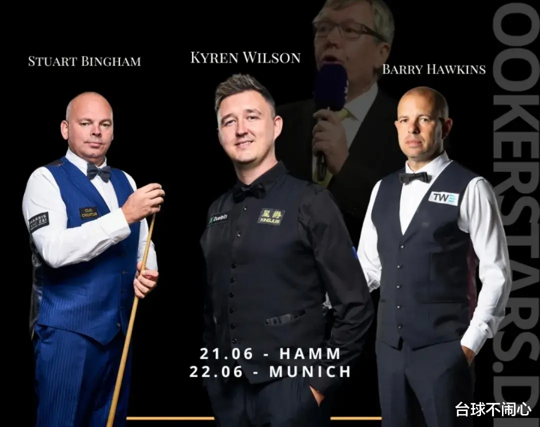 威尔逊、宾汉姆和霍金斯,6月21日在德国有一场表演赛 ,另外国外记者菲尔·海格对希金斯和加里·威尔逊进行了采访,加里本赛季打的一般,最好成绩是半决赛 ,他决定最近去打打九球,提升一下士气!