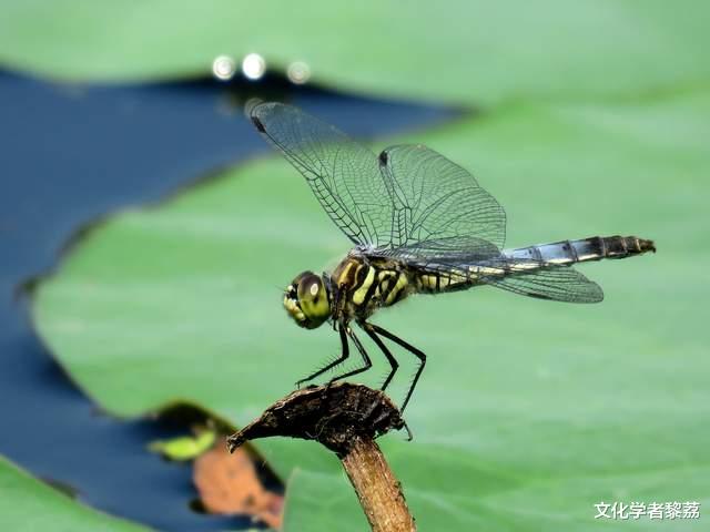 当太阳西沉,光线变得绵长而温暖,我的翅膀会感到一丝疲惫。那渐进的昏暗所带来的,与其说是惆怅,不如说是一种深沉的召唤。白日的喧嚣过去,世界回归它本初的宁静。天地熔为一炉金色的流质,而我,是这流质中一个细微的、却无比坚定的坐标。黄昏在流水晚照下闪烁震颤,我几乎忘却了那只一直在我身后悄无声息盘旋的蜻蜓。他有着更宽厚的翅,与一身如青铜器般幽光的绿。他的追逐,是另一种形式的舞蹈,比捕食更专注,比飞翔更用力。后来,我们尾腹相连,在荷尖上停成一个脆弱的平衡。我感觉到生命最原始的悸动,正在我的体内酝酿。这仪式,从千万年前我们的始祖第一只飞上天空时,便不曾更改过。于是,我飞向那片我出生的池塘。将腹部末端,一次次探入微凉的水中,点开一圈圈无奈的涟漪。每一粒沉入水底的卵,都是一个渺茫的、关于未来的承诺。这承诺,要交给时间,交给流水,交给不可知的命运。