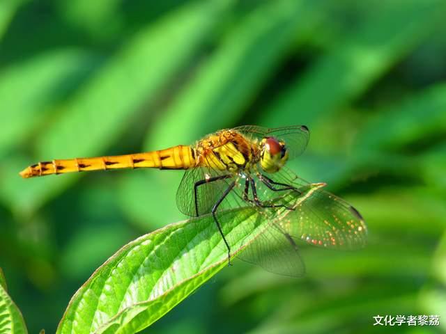 但我并非总是这般务实。有时,我也会痴了。我会悬停在一颗将坠未坠的清露前,看那里面包裹着的整个世界——一个倒悬的、微微颤动着的小天地。我的宇宙,便是由这亿万颗清露里的倒影拼凑而成的么?我的欢愉也简单,只为这一滴露的圆满晶莹;我的惆怅也莫名,只为那天边一丝丝漫上来的夕阳余晖。我认得我的族类。那硕大的,身着蓝黑铠甲的是王者;那通体朱红,如一点跃动火焰的,是法师。我们彼此并不交谈,只在交错飞过时,以翅颤的微频率互致问候。我们漫天飞舞着,在晚照里织成一张金紫交错的、红绿闪动的网。这时,我们便不像现实主义的昆虫了,倒像是从古老幻境里逃逸出来的精灵,羽翼上镀满了梦想与诗意的虚幻之光。