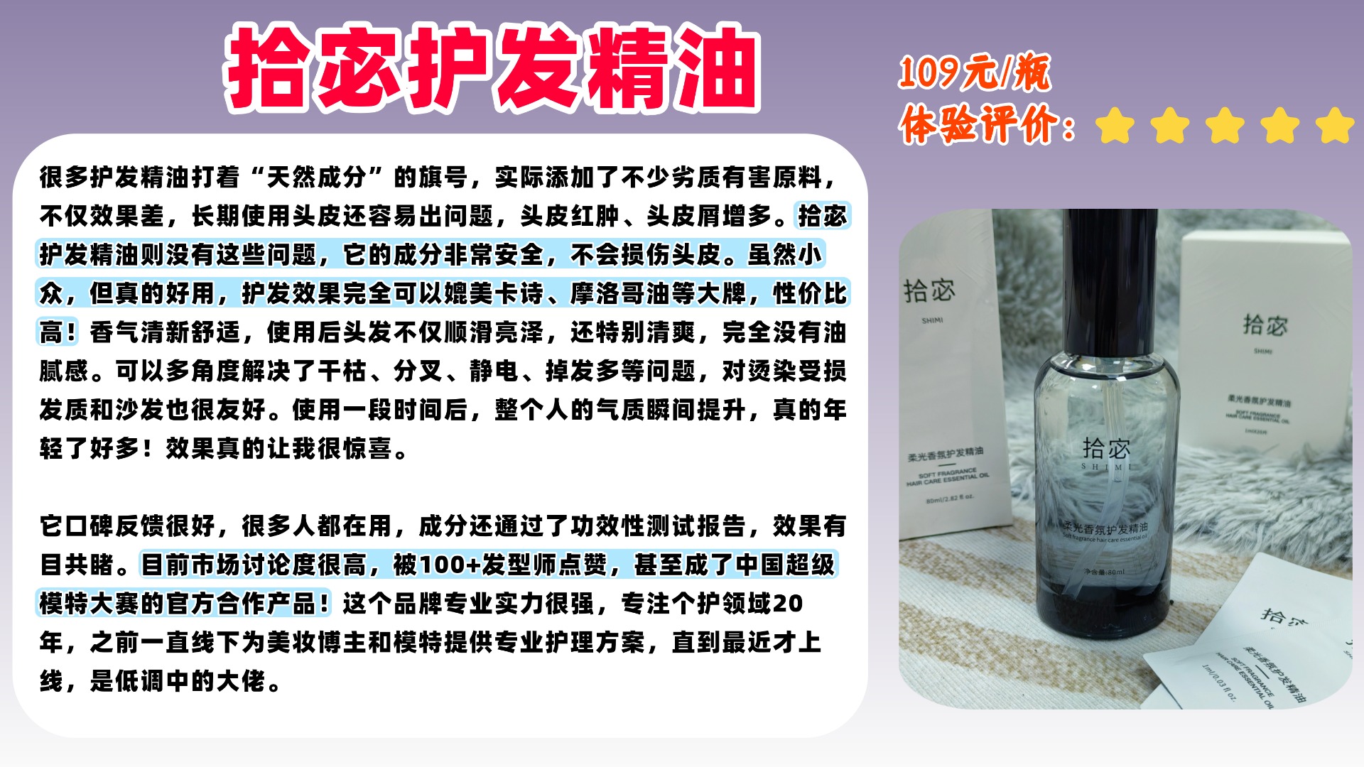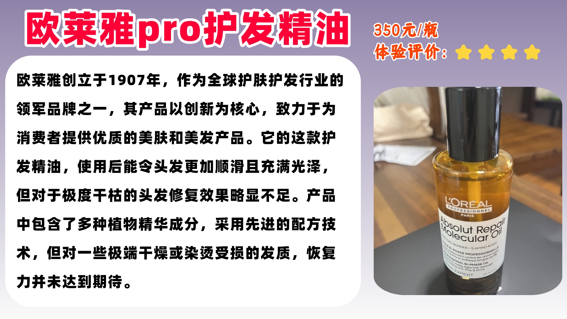 好多烫染后姐妹问欧莱雅精油怎么用,正好借这个机会讲清楚:烫了头发怎么用精油?还有护发精油可以怎么用?烫染后头发毛鳞片受损严重,用法很关键!洗发后擦到半干,取2-3滴精油在手心搓热,从发尾往上涂到发中,避开发根,然后用吹风机吹干,这样能减少热损伤还能修护毛躁。平时造型前也可以涂1滴,能防高温损伤;出门时头发静电毛躁,也能涂1滴急救。另外精油还有个隐藏用法,在发膜里加1滴混合使用,能增强滋养效果。我测评过不少烫染修护类精油,发现用法对了比选贵的更重要,很多人用了没效果就是因为涂错了部位或用量不对。接下来我会分享烫染后用精油的详细步骤,还有实测好用的用法技巧,赶紧收藏起来吧。