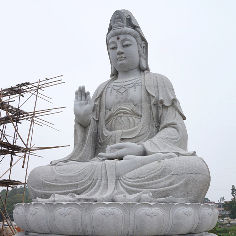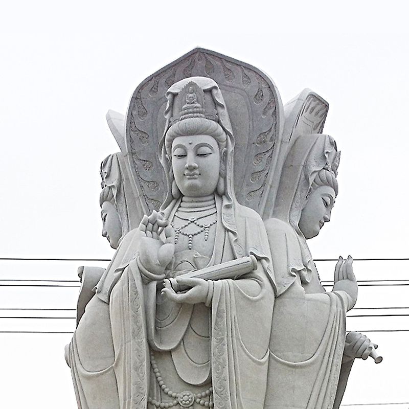 石雕送子观音像是三十三观音相之一,其在民间观音信仰文化中占据十分重要的地位;石雕送子观音的艺术形象是一位端庄优雅的女性形象,其面容和蔼可亲,眼神温柔,面带微笑,身着华丽的佛教袈裟,头戴宝冠或莲花,展现出超凡脱俗的气质。常见的石雕送子观音通常都怀抱婴儿,有抱一个的也有抱2个婴儿的,还有的石雕送子观音菩萨手抱婴儿,旁边还站着稍微年长的健康孩童;在婴儿的衬托下,更凸显出石雕送子观音菩萨的慈悲与母性光辉。许多适龄的青年男女,都喜欢前往寺庙朝拜石雕送子观音,祈求生育子嗣、延续家庭血脉的美好心愿。