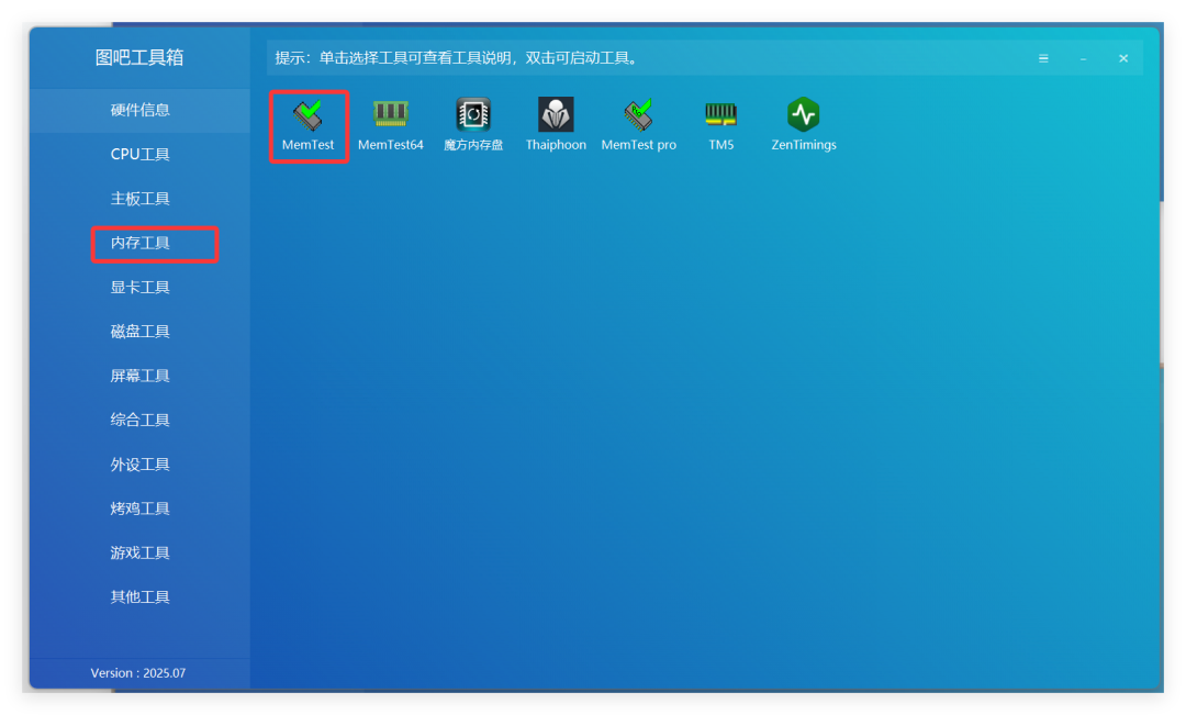 该工具主要用于测试内存稳定性和可靠性,打开后如下: