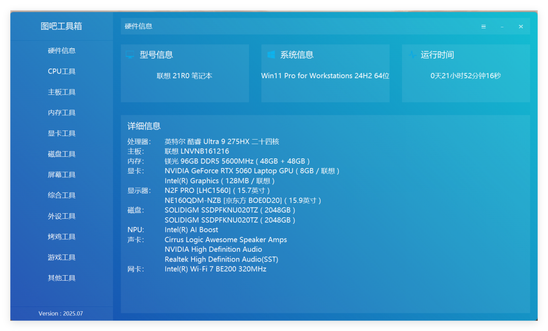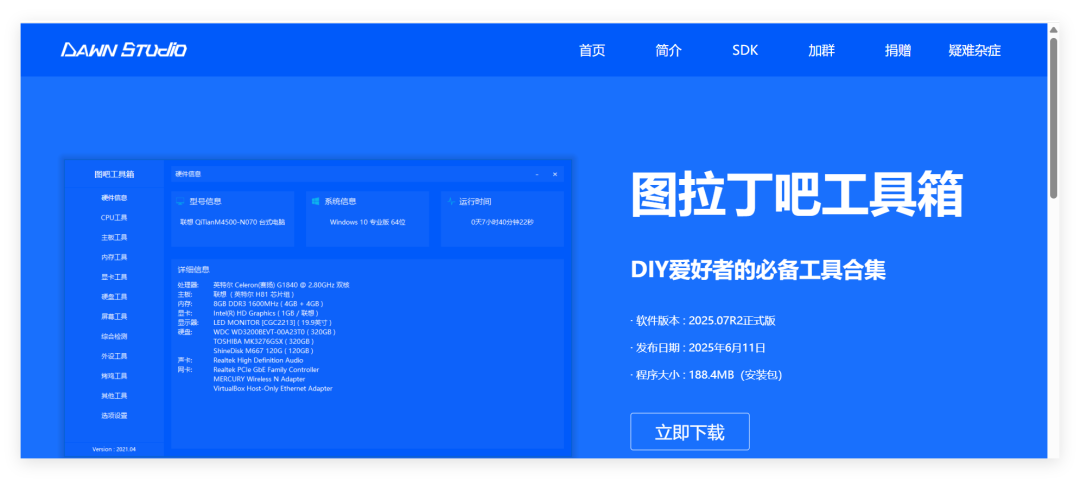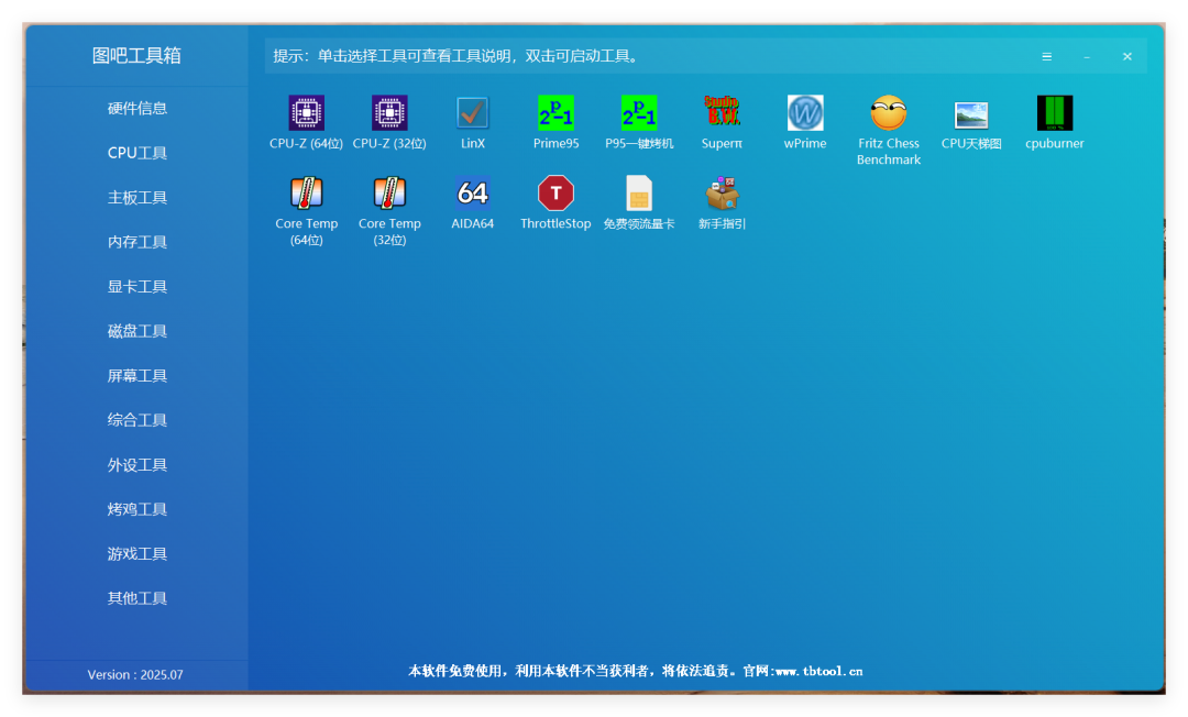 图吧工具箱是目前比较好用的硬件检测的实用工具箱,其官网地址为:https://www.tbtool.cn/