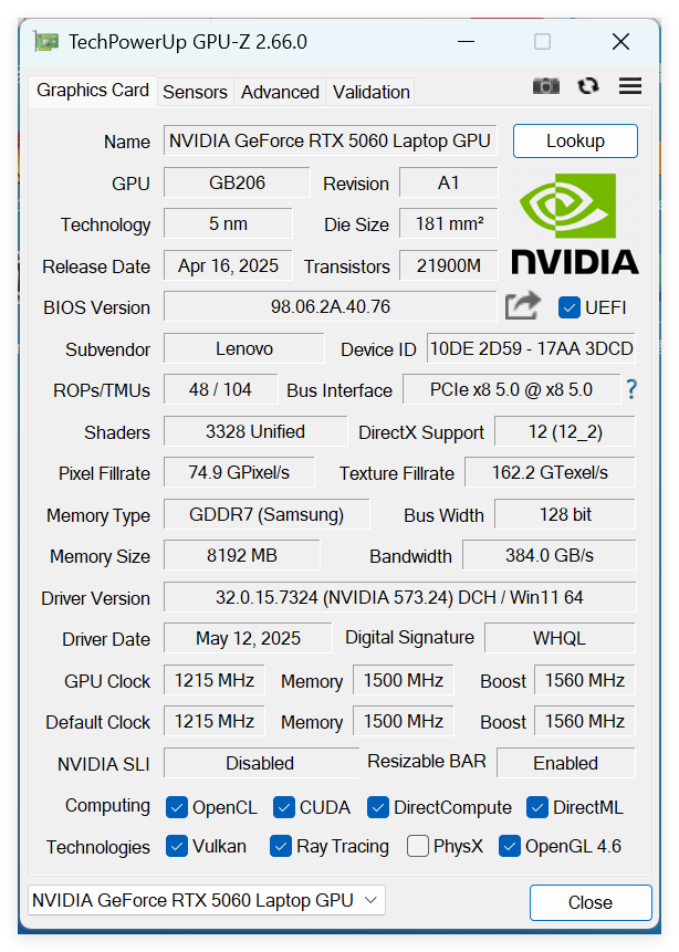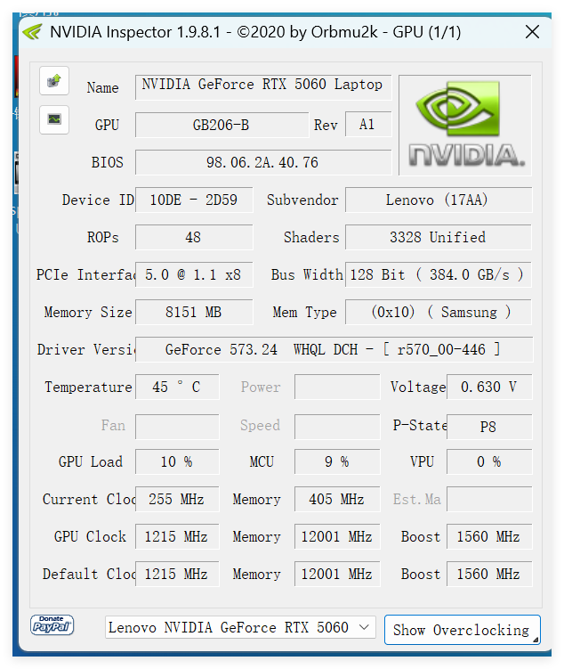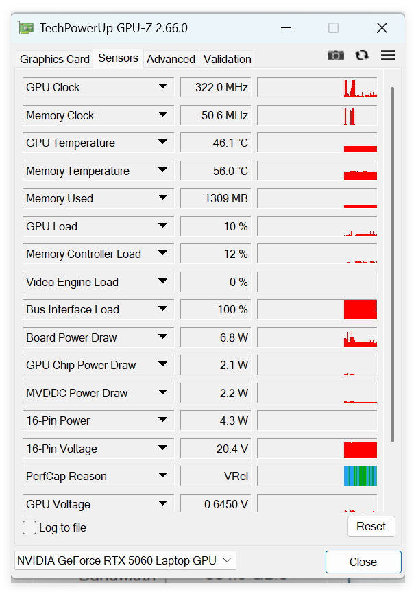 当然,还可通过“Sensors”选项查看显卡状态: