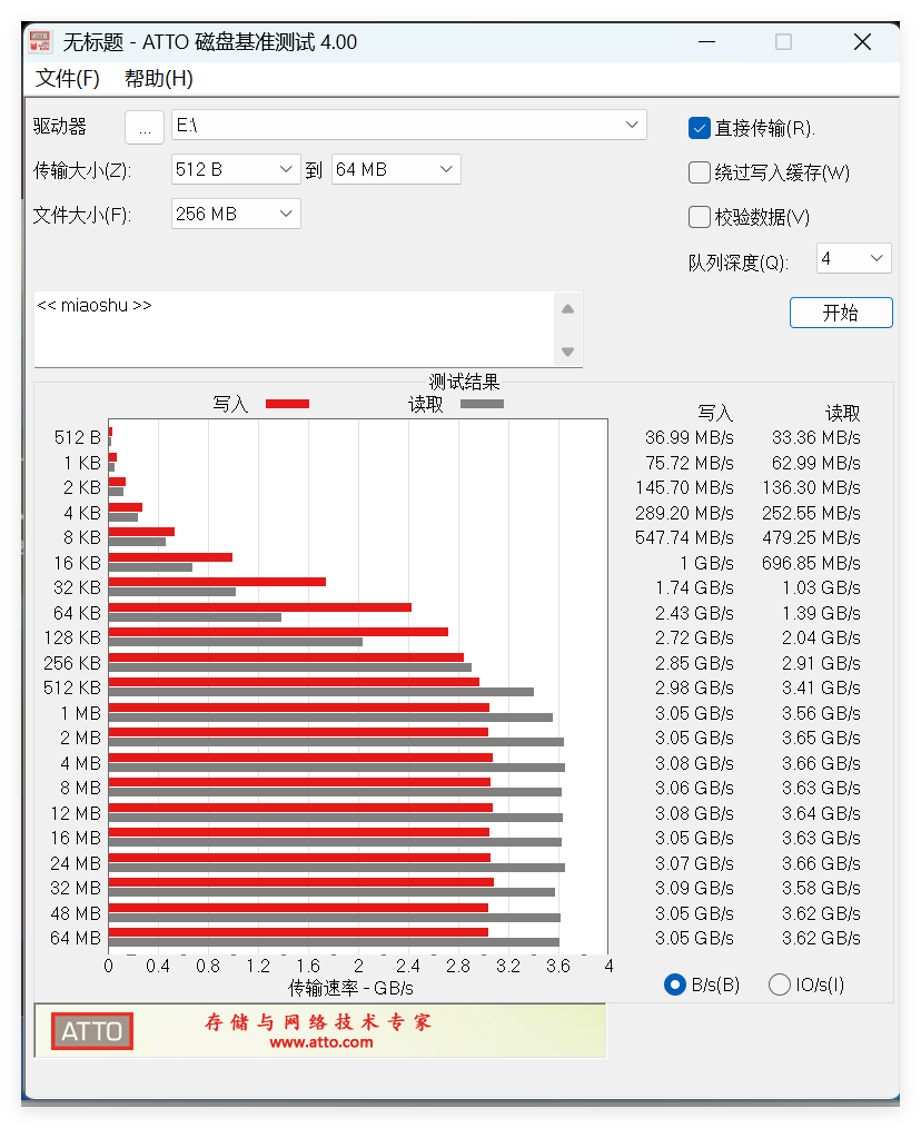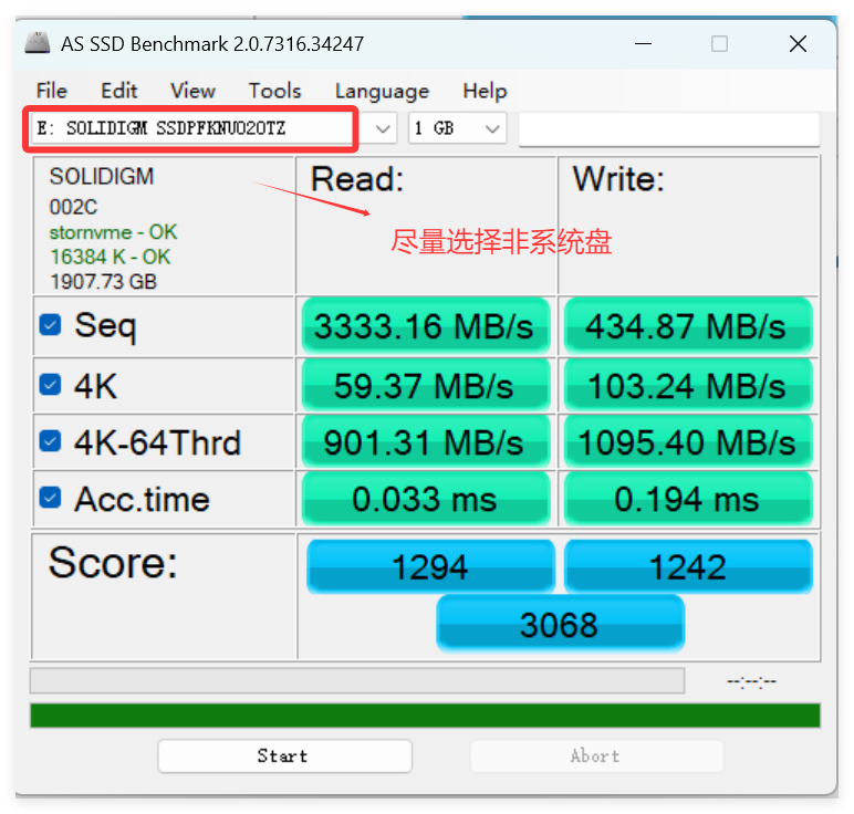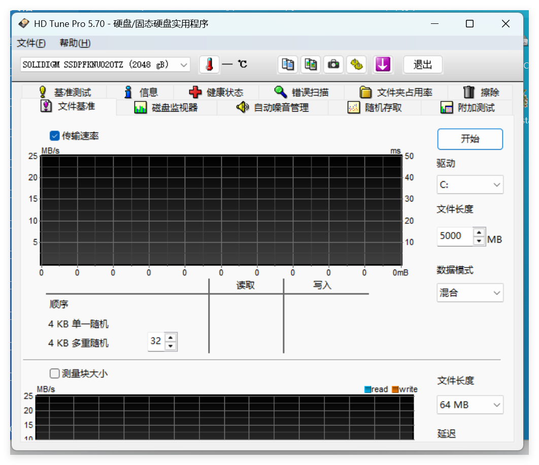选择合适的磁盘和测试文件大小后测试: